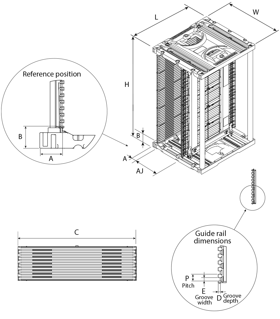 Nikko-Racks sind für vollautomatische Montagelinien konzipiert. Die Anpassung an die Leiterplattenbreite erfolgt in Sekundenschnelle, wodurch die Umrüstzeiten reduziert werden.